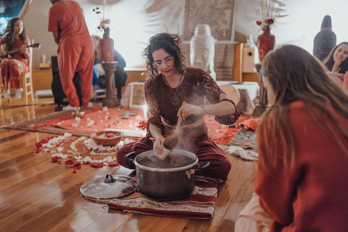 Eu não falo de um lugar acima, mas ao lado. O trabalho nasce da própria vivência, das travessias, das pausas e da integração real do sagrado no cotidiano.